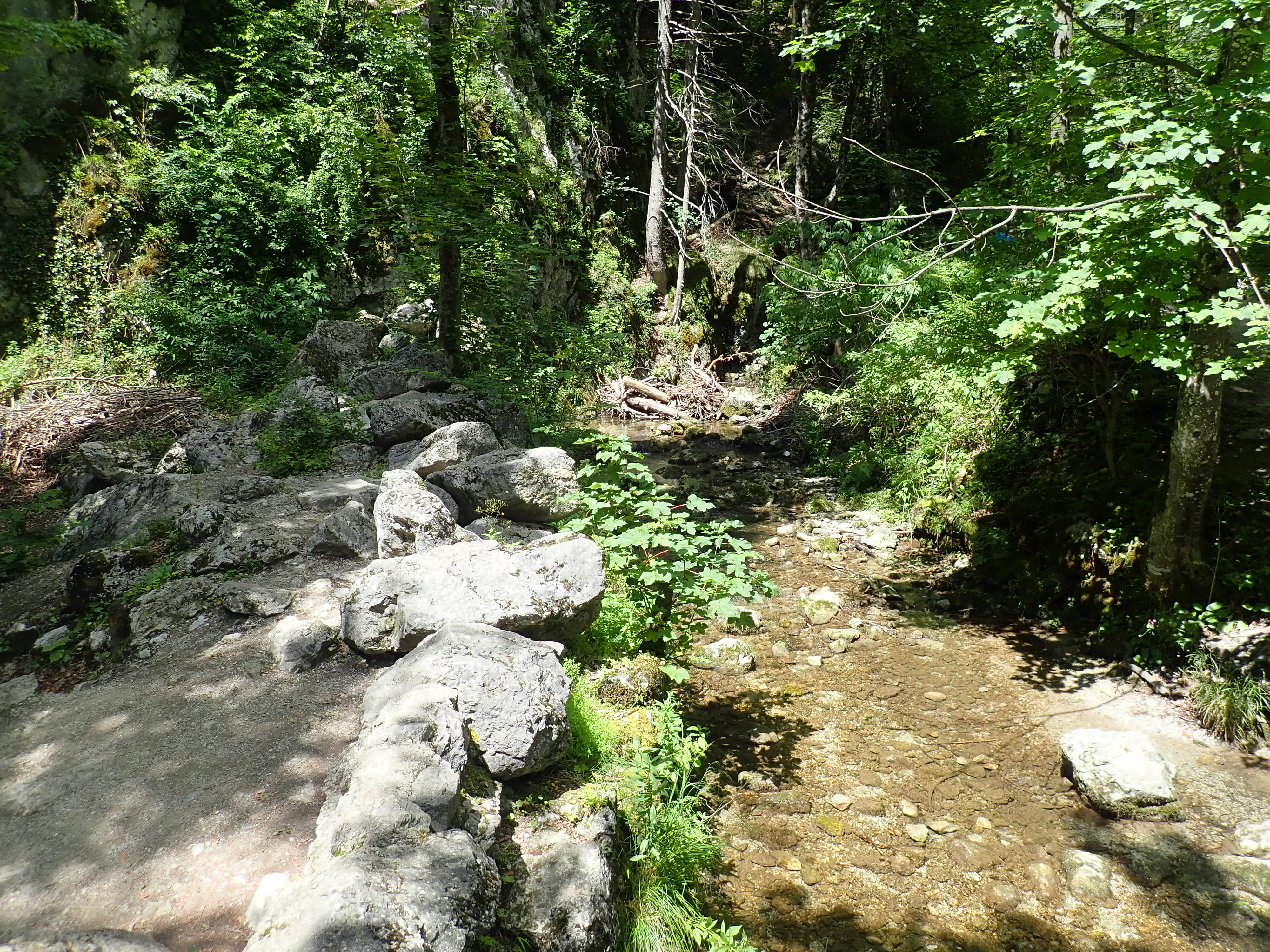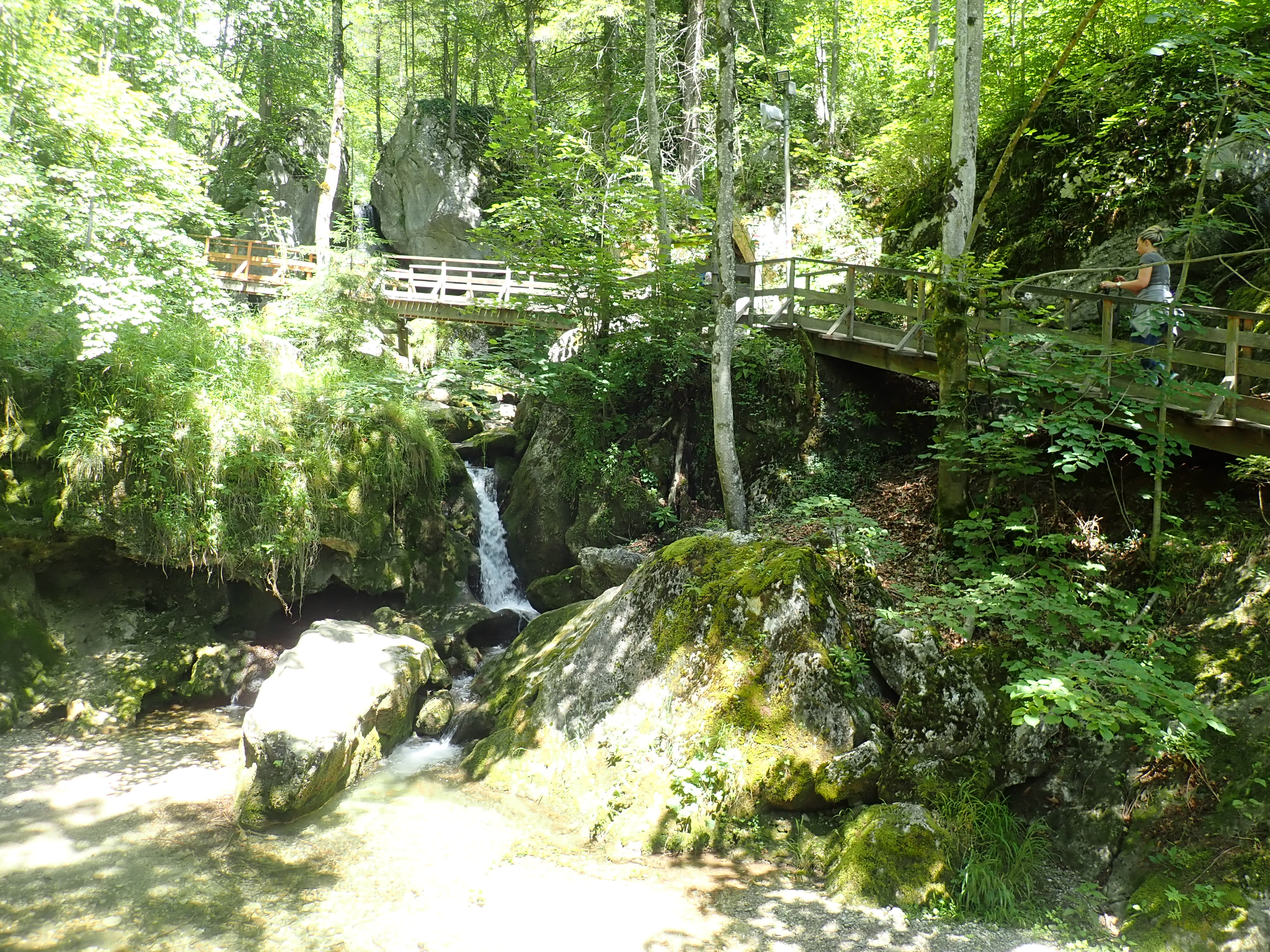 Nagyjából 30 perc alatt meg lehet tenni az utat felfelé, közben padokon, kialakított pihenőhelyeken is megállhattok. A belépő, és kilépő látogatószámot mérik, így tudják hányan vannak bent pontosan. A helyszínen hegymentő szolgálat is működik. Miután végiggyönyörködted a fahidakról a vízeséseket, egy forgókapun kijutva eldöntheted, hogy visszafordultok (ekkor balra lefele visszavisz az út)  vagy továbbmentek. Aki továbbmegy a piros jelzésen, az a pasa mellett egy pihenőkkel tarkított szép, erdei  ösvényen jut fel a fenti tóhoz, ami még kb. 20 perc. A fenti zsilip mellett elsétálva a tó mellett érjük el a játszóteret, és a hangulatos Karnerwirt fogadót, ahonnan pazar kilátás nyílik, többek között a Schneebergre. Innen tudunk továbbmenni a Steinwand szurdok felé, vagy visszaindulni az ismert erdei úton, majd jobbra tartva le a főbejárat melletti tóhoz.